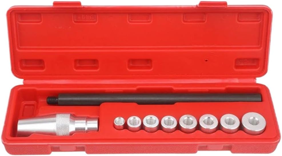 This universal clutch aligning tool kit includes 10 pieces with 8 collets sized from 11mm to 25mm, designed to assist in accurate clutch disc alignment during transmission service.The set is compatible with a range of automotive applications and is built for in workshop environments.