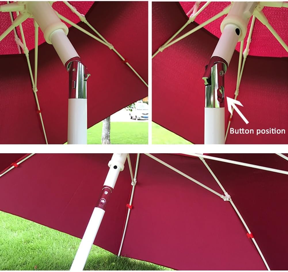 Double ventilated top design looks stylish and elegant keeping cool and comfortable in the sun Multiple people can be accommodated under the 2.5m (8.2ft) patio umbrella to enjoy each other's company without the distraction of the sun's harsh rays Press the button to tilt for better shade from the sun and rain Material: polyester steel pipe Color: blue red white green Umbrella arc length 2.5m(8.2ft) Diameter of opening under umbrella: 2.3m(7.5ft) Height 2.5m(8.2ft) Pole diameter 3.2cm(1.2inch) Umbrella Ribs 8mm Unit weight: 3kg(6.6LBS) Packing list: 1x Patio parasol (without base) Note: The color of the patio parasol may vary depending on the lighting conditions thank you for your understanding If there are any questions please feel free to contact by email