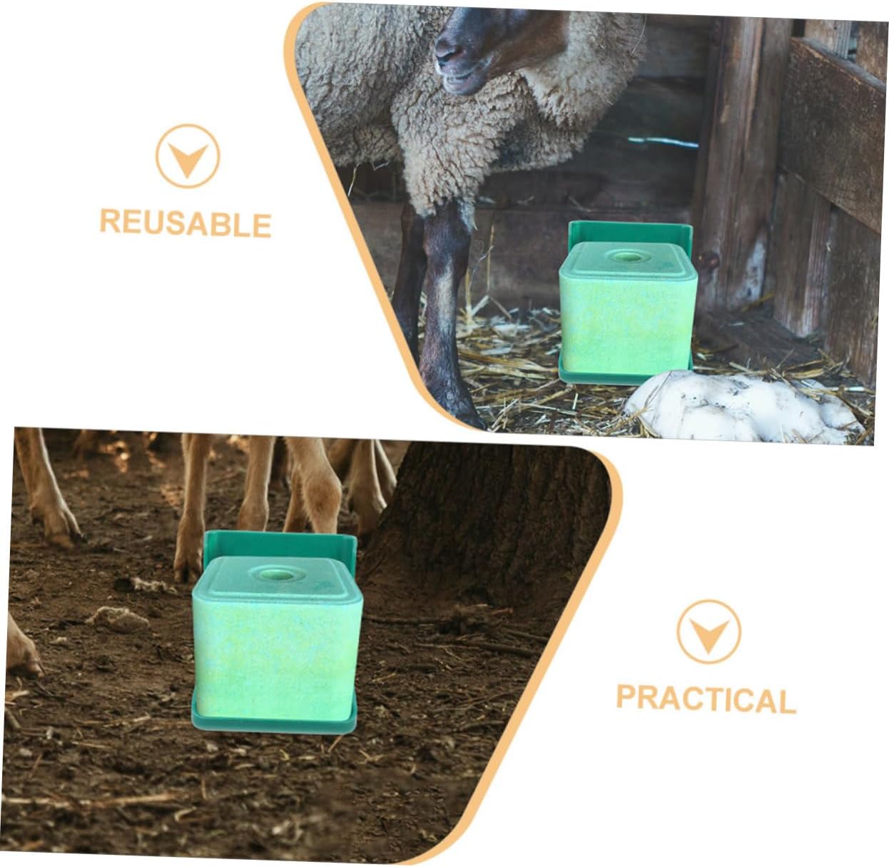 Package List 2 x livestock salt brick licking box Characteristics -Size:20.00X20.00X20.00cm/7.86X7.86X7.86in Farm Salt Feeder -Material:PP Sheep Salt feeding Accessory -Color:Green Livestock Salt Feeder -Made of PP material for livestock, this feeder will provide well environment for livestock eating salt cow salt feeder. -Nutrition lick brick feeder provides livestock fodder and not easy to break. You can use it for a long time Convenient Salt Blocks Rack. -The product is suitable and convenient for livestock, such as cattle, sheep, horse, etc. Meet your using needs Poultry Salt Breeding Rack. -The product is more convenient and easy for cleaning and not easy to break. This is simple and to use, very convenient and Salt Blocks Holder. -Wonderful friends who have a farm, it's useful for them, and fitted for pet shop, home or farm. This is very useful for them salt brick feeding tray for sheep.Goods Descriptioncow salt mineral feeder It is easy for you to this tool, which could bring your poultry a cleaning eating environment.Feed Pan Made of PP material, , and .Livestock Salt feeding Supplies This feeder can help feed nutrition lick brick to your livestock automatically.feeding salt rack for cow Designed to help you enjoy a happier and healthier life with your poultry