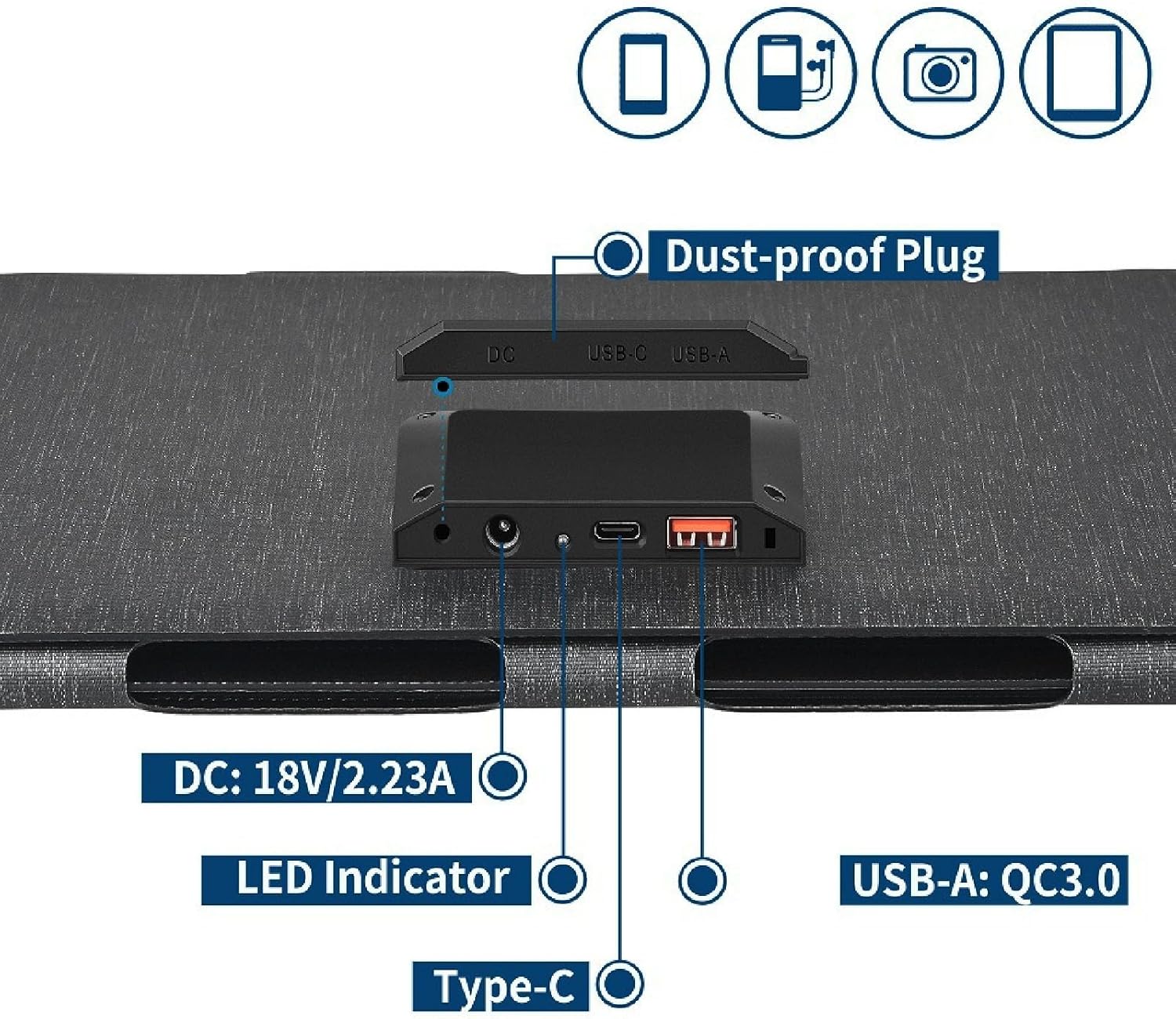 Specification: Item Type: Solar Charger Material: Monocrystalline Silicon Output Connector: USB Type C Direct Current How to Use: The solar panel can be used by placing it in the sun. Package List: 1 x Solar Charger 1 x Cable 1 Set x Adapter (3pcs)