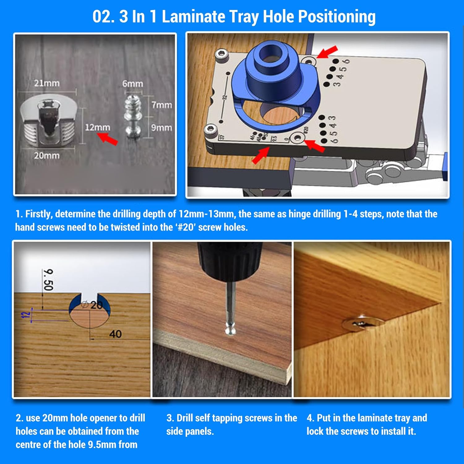 Specification: Item Type: Door Hinge Jig Material: Aluminum Alloy Size: Approx. 35mm / 1.38in Drill Bit Approx. 2mm / 0.08in Use: Widely used for hinge installation, door hinge drilling position, woodworking hole auxiliary tool. packing list: 1 x Door Hinge Jig 1 x 35mm Drilling Tool 2 x Hex Wrenches 1 x Washer 1 x Positioning Circle 1 x Plum Nut 1 x 2mm Drill Bit 1 x Socket Bit 1 x Spring 1 x Ruler 1 x Storage Box