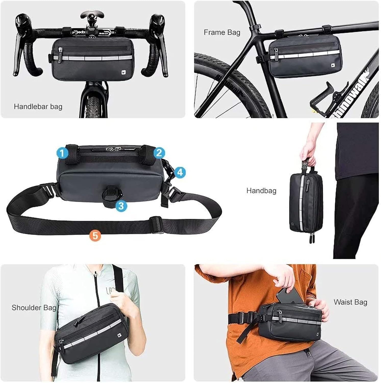 Material: 1680D polyester. Size: 25*8.5*13cm(L*W*H), approx 3L, weight:250g, can carry what you need for daily.Four straps included, easy to install on handlebar and frame, width only 8.5cm, never touch your leg even shake bike. Multiple compartments inside, you can place your valuables in an orderly manner.Extra removable shoulder strap, can be used as leisure shoulder bag, waist bag and handbag.Occasion: Riding, outsports, commute. Suitable for most kinds of bicycles, such as folding bikes, MTB and scooters.Package includes: 1*bike bag, 1*shoulder strap.