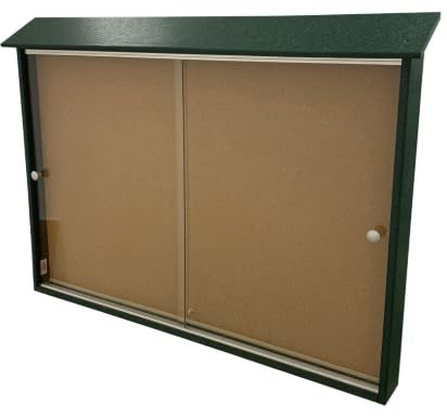 BuyBocceBalls is a family owned business, located in Northern California. Thank you for your business! Display Area: 44 1/2" W x 29 1/2" H Exterior: 48" W x 34" H x 5 3/8" D Weight: 48 lbs Easy, maintenance-free way to post items outdoors Weatherproof vinyl exterior Can be mounted on wall, chain-link fence, or post Sliding doors run along rust-free aluminum tracks Options sold separately Ships fully assembled Available in black, green, & white Available in 3 sizes: Includes: POST Attachment kit Outpost header sign - one line fits all models sliding door lock