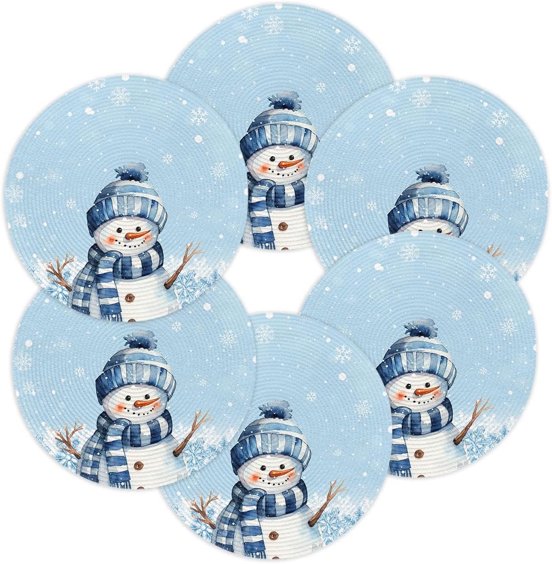 Christmas Round Woven Placemats for Indoor Outdoor Xmas Dining Table DecorGive an elegant decor touch to your home, and add a natural art aesthetic chic atmosphere.【Product Description】Package: Placemats Set of 2/4/6/8 PCSSize: Diameter 15 InchMaterial: Eco Friendly PolypropyleneMatches delicately and creates a unique lifestyle for your dining table, kitchen, garden, party, banquet, hotel, diner, reception, cafe, bar, picnic, BBQ, patio, any outdoor and indoor use.【Multiple Design Occasions】Adopting advanced digital printing technology, bright colors, and clear images, sturdy weave, overall elegant and beautiful.Our place mats come in a variety of vibrant colors and patterns full of natural aesthetic feeling for you to decorate your home.Our placemats set are durable, reusable, and exquisite. Great choice as a considerate and delicate gift for family members, couples, friends, and roommates.The high end placemats look elegant and stylish, and could be used for cups, plates, some tableware, cooking pots, potted plants etc, to meet your different needs. 【Warm Tips】Wipe clean with damp sponge or cloth. Both machine and hand washable with gentle cycle and lay flat to dry, no bleach, iron on low heat if required. The colors may have slight differences due to different screens.Due to the official package restrictions, placemats rolled up in the box, we suggest put some heavy things on the mats after unboxing, the crease will disappear and it will be flat.【Special Note】How to make the placemats flat?Unboxing → Crease the back → Turn over the placemats opposite → Make the front side up → Put heavy things on it → After a while, they will be flat