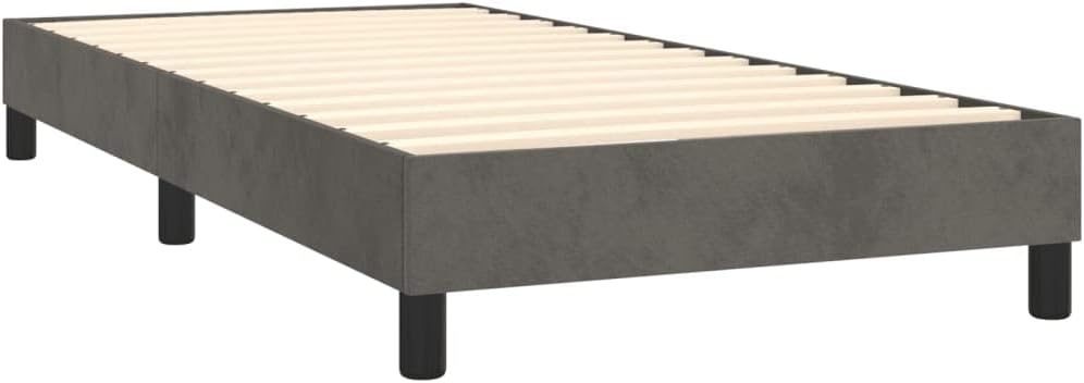 This Dark Grey Twin XL Velvet Bed Frame transforms any bedroom into a stylish sanctuary with its modern design and luxurious velvet finish. With its soft touch and strong build, it promises both comfort and durability, making it a fantastic choice for anyone looking to upgrade their sleep space.Soft velvet upholstery gives a luxe feel and look, crafting a lavish set-up for chilling out.Sturdy construction offers great stability, providing a reliable sleeping surface for daily use.This bed frame’s modern style fits right in with contemporary bedroom designs.Compact Twin XL size is perfect for smaller rooms, giving a comfy sleeping option for one person.Easy assembly process needs few tools, allowing for quick setup in any living space.Color: Grey Shape: RectangularMaterial: Fabric VelvetFinish: Matte Indoor/Outdoor: Indoor OnlyCover Included: NoRoom: BedroomCapacity: Twin XLMaximum Number of People: 1Dimensions: 39.4 x 81.1 x 9.8 in (W x L x H)Surface Height: 9.8 cmLeg Height: 9.8 inSwings: NoDelivery Contains: Bed frameAssembly Required: YesRecommended Number of People for Assembly: 2
