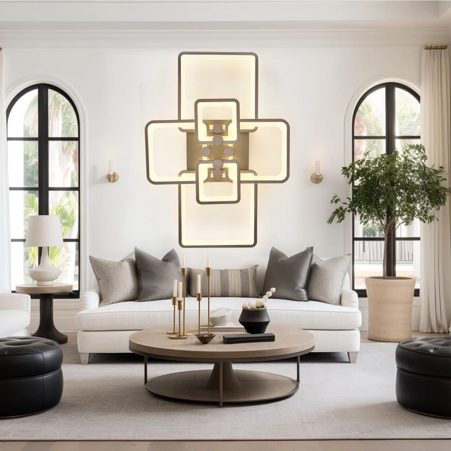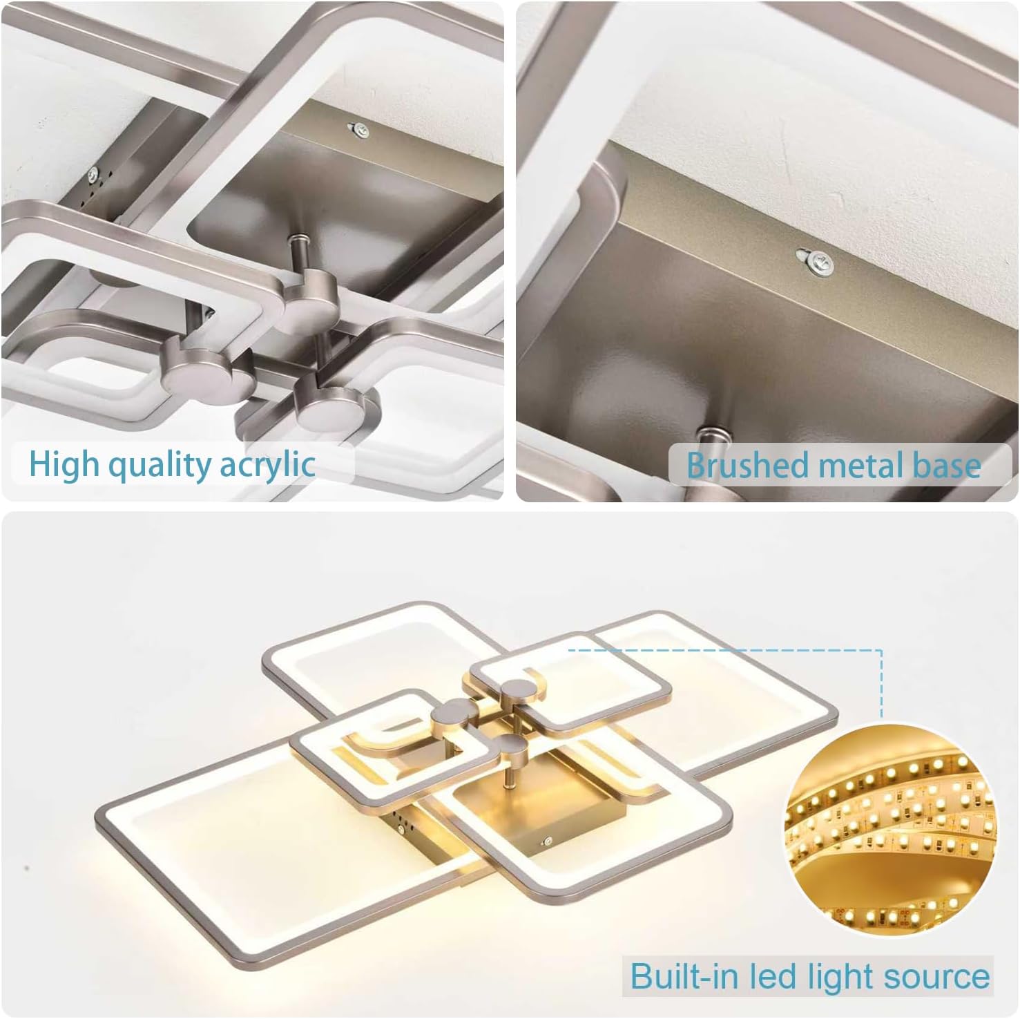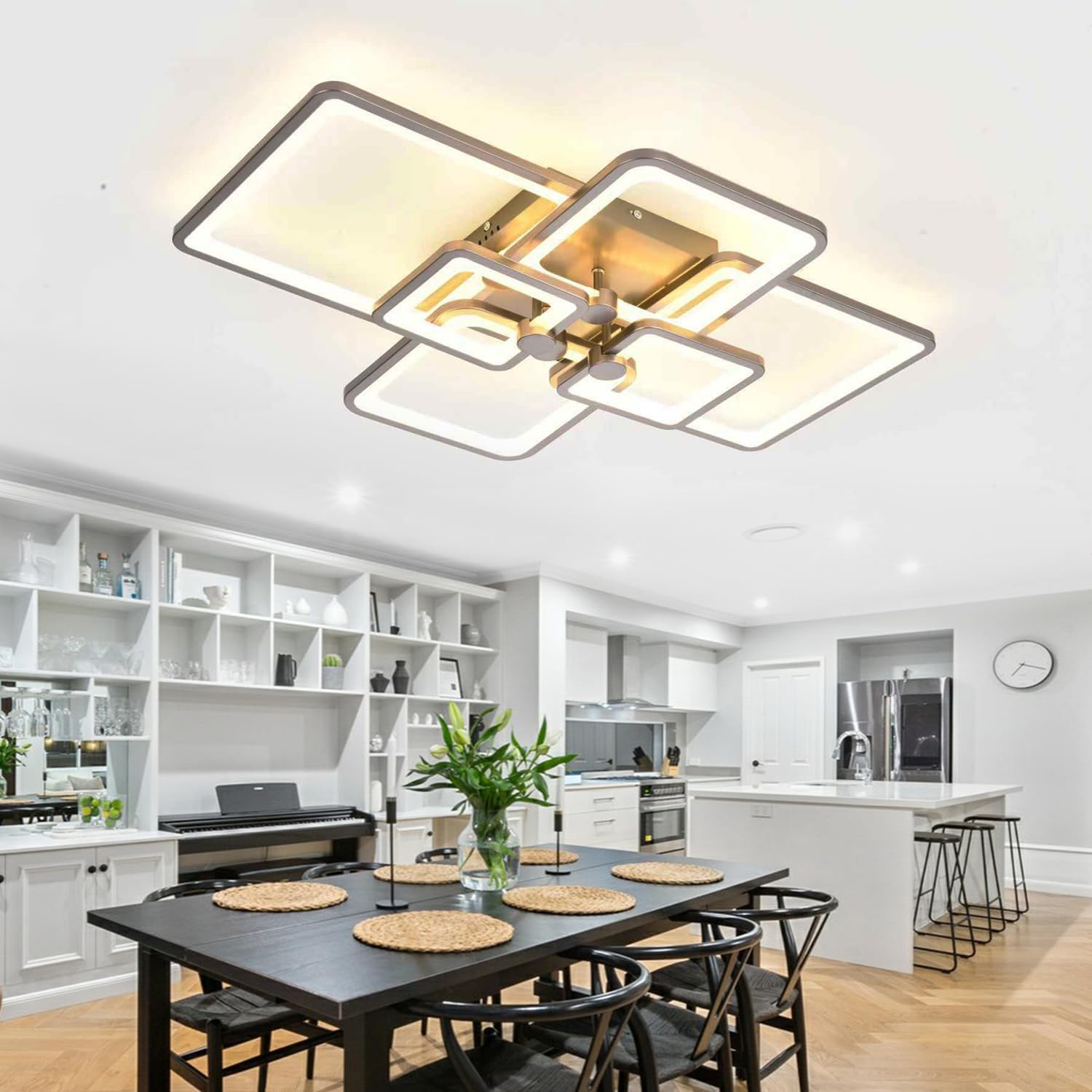 HIHIHOMY Dimmable Ceiling Light, Modern Black LED Ceiling Lamp, 78W Living Room Lamp with 6 Rectangular Geometric Design, Multifunctional Ceiling Lighting for Bedroom, Office, Balcony