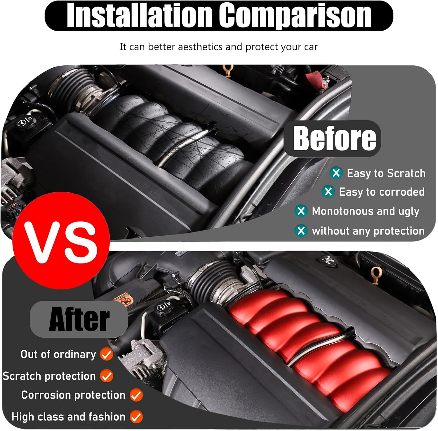 Suetlcoity offers a wide range of accessories to enhance and upgrade both the look and function of your vehicle . We sincerely appreciate your decision to purchase our products, we always committed to providing the high-quality, safe automotive decorative products and the excellent ,professional and customer service.📌Item Description:Applicable Model: Compatible with Corvette C6 2005 2006 2007 2008 2009 2010 2011 2012 2013. Condition:Brand NewMaterial: Made fromaluminium alloy material with precision cutting process.It iswhich is strong, anti-oxidation, not easy to rust, wear-resistant, scratch-resistant,and with a long service life.not only improves the monotonous or faded look of car's Engine location It also easily improves friction. It feels better when you turn the cap by hand. 📢Attention:Please check whether this item can fit on your car before purchasing.if you meet any problems when using our devices, please feel free to contact us and our staff will reply in 24hrs.💡Installation method:Step1.Wipe the surface where you want to stick. Keep dry and clean .(Very important)Step2. Determine the installation location and then make comparison of the product and installation location. If the product doesn’t fit your vehicle, please contact us immediately and do not install.Step3.Remove the protective film from the Double-sided tape on the back of the product. For better results, it is recommended to heat the double-sided tape with a hairdryer or lighter.Step4.Paste the accessories in the corresponding position and you can use the edge of a sheet of credit card to help press it to make sure the adhesive sticks firmly.🎁Package Include:2pcs/set of Suetlcoity Aluminum Engine Protective Panel Cover Suetlcoity will also produce other automotive accessories, please check our store for details.