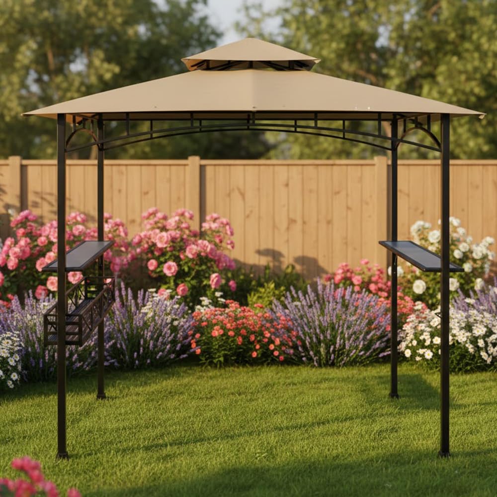 Replacement canopy top compatible with Aldi Gardenline Belavi 8' x 5' Grill Gazebo, custom fit for models 43472, 31937-17, (2016-2024), 812576, 822694, and 21581, sold at Aldi and ShopRite. Made from 350 denier polyester in Beige, the fabric is UPF 50+ UV Resistant, water resistant, and CPAI-84 fire retardant for outdoor use. Backed by a 1-year limited performance warranty with US-based customer support for fit and product questions. Replacement canopy only; metal frame not included.
