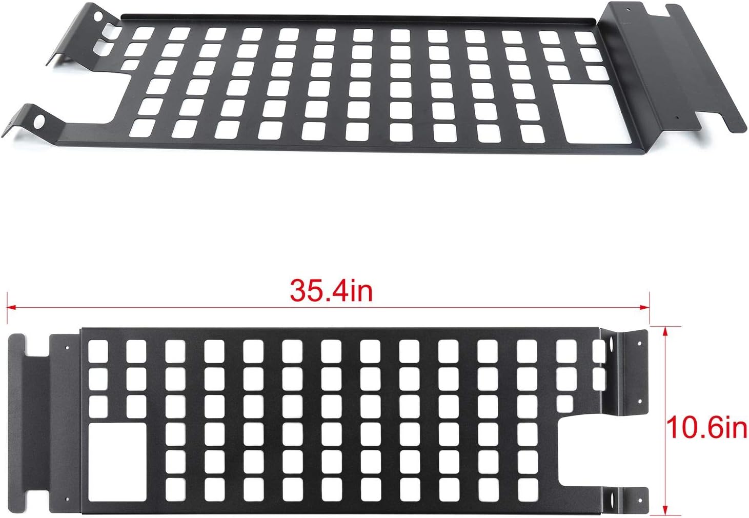 Fitment: Fit for Jeep Wrangler JK 4 Doors 2007 2008 2009 2010 2011 2012 2013 2014 2015 2016 2017 2018 . Features: - Add More Storage Space - Solid Construction - Minor Drilling Required - Convenient & Modular Mounting Surface - Textured Black Powder Coating - Compatible with Hardtop & Soft Top - Interior Accessories for Jeep Wrangler JKU Premium Construction. JeCar roof rack is made of heavy-duty iron with a durable and rust-proof powder coating. Custom Fit. This molle panel is custom-designed to fit a JK with a hardtop or soft top. A cool addition to double the storage space & keep your trunk organized. Complex Installation. This rack goes on your roll bar. Minor drilling is required. Compatible with hardtop and soft top after installation. Note: DO NOT fit a 2-door JK. Package Included: - 1 x Roof rack for JKU