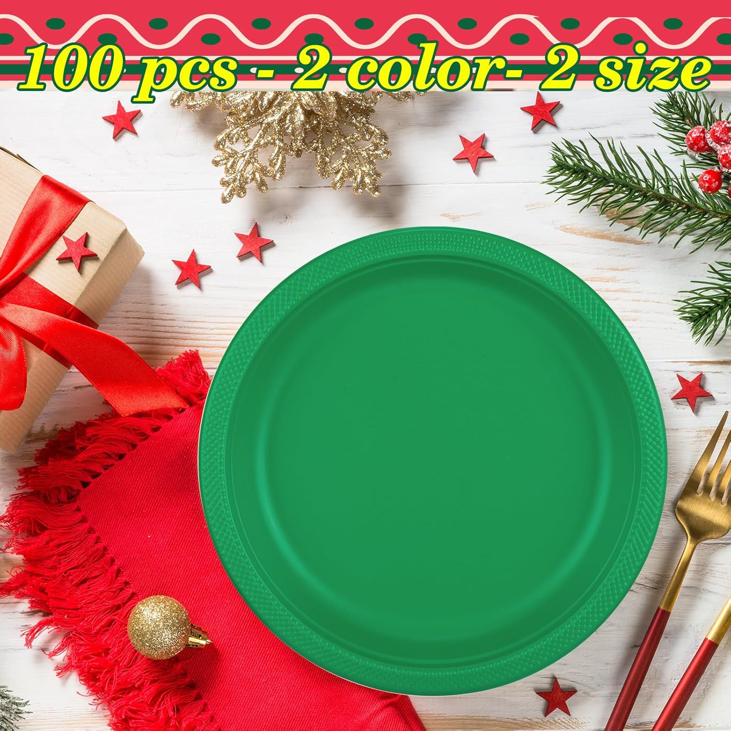 Features: These party plates make for a thoughtful and practical gift. Whether you're attending a holiday party or visiting loved ones, bringing along a pack of these plates can be a helpful gesture, ensuring hassle less serving and clean up for the hosts. The plastic dessert plates come in two colors, red and green, and the colors are bright. Its color combination fits nicely with the Christmas theme. Specifications: Material: plastic Color: red, green Size: about 7.01 x 7.01 x 0.79 inches/ 17.8 x 17.8 x 2 cm, 10.04 x 10.04 x 0.79 inches/ 25.5 x 25.5 x 2 cm Package includes: 100 x Plastic Christmas dinner plates Notes: Manual measurement, please allow slight errors on size. The color may exist a slight difference due to different screen displays.