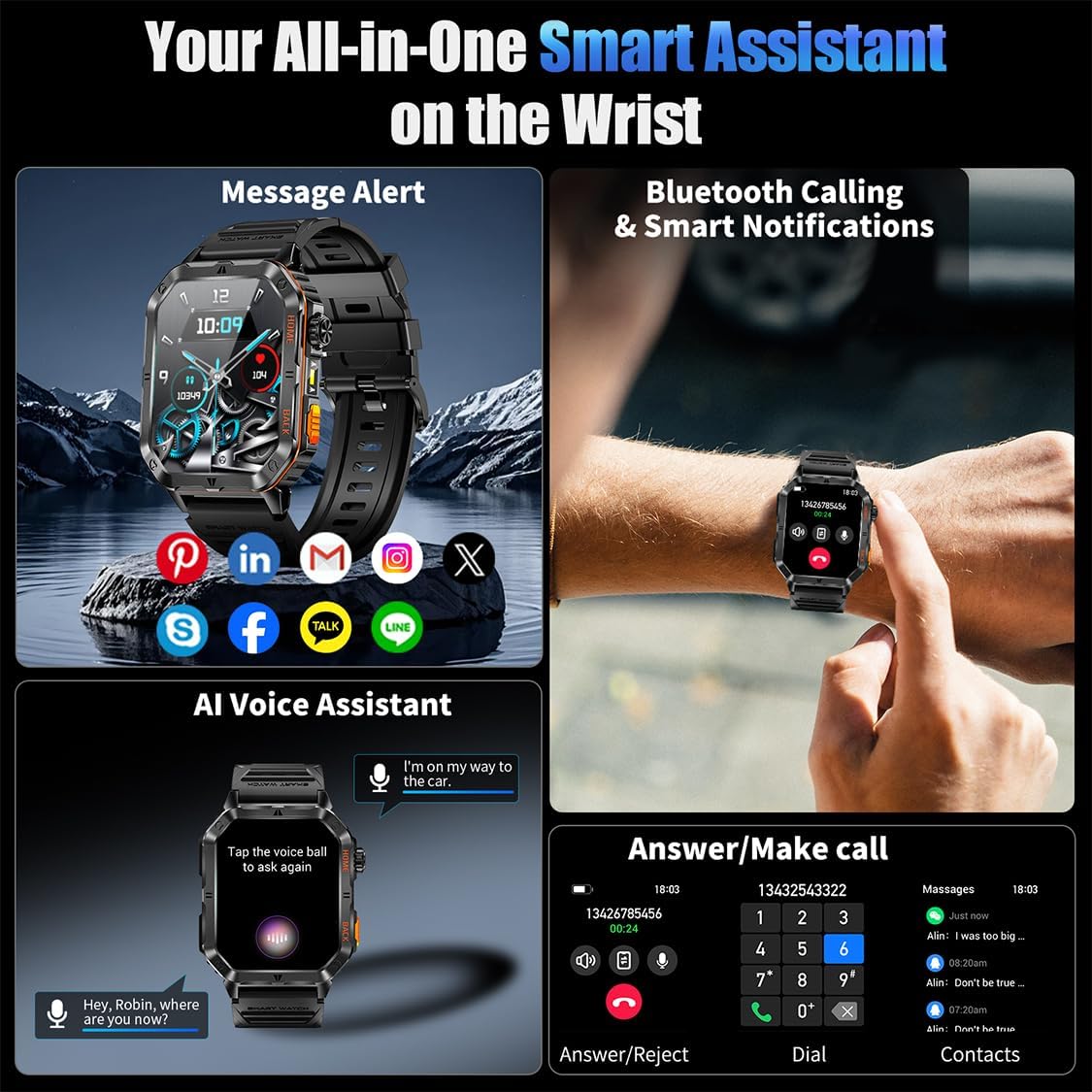 | Additional Features | 2.01" HD Screen Display, 5ATM Waterproof, Bluetooth Make Answer Calls, Message Notification, 113 Sports Modes, Fitness Tracker, Sports Records, Activity Tracker, Alarm, Clock, Calendaring, Camera, Custom, Activity Tracking, Cycle Tracking, Daily, Workout, Lightweight, Multisport, Tracker, Music Player, Notifications, Password Protection, Phone Call, Sedentary Reminder, Shockproof, Text Messaging, Time Display, Touchscreen, Voice Call, Voice Control, Weather, Forecast, SOS |