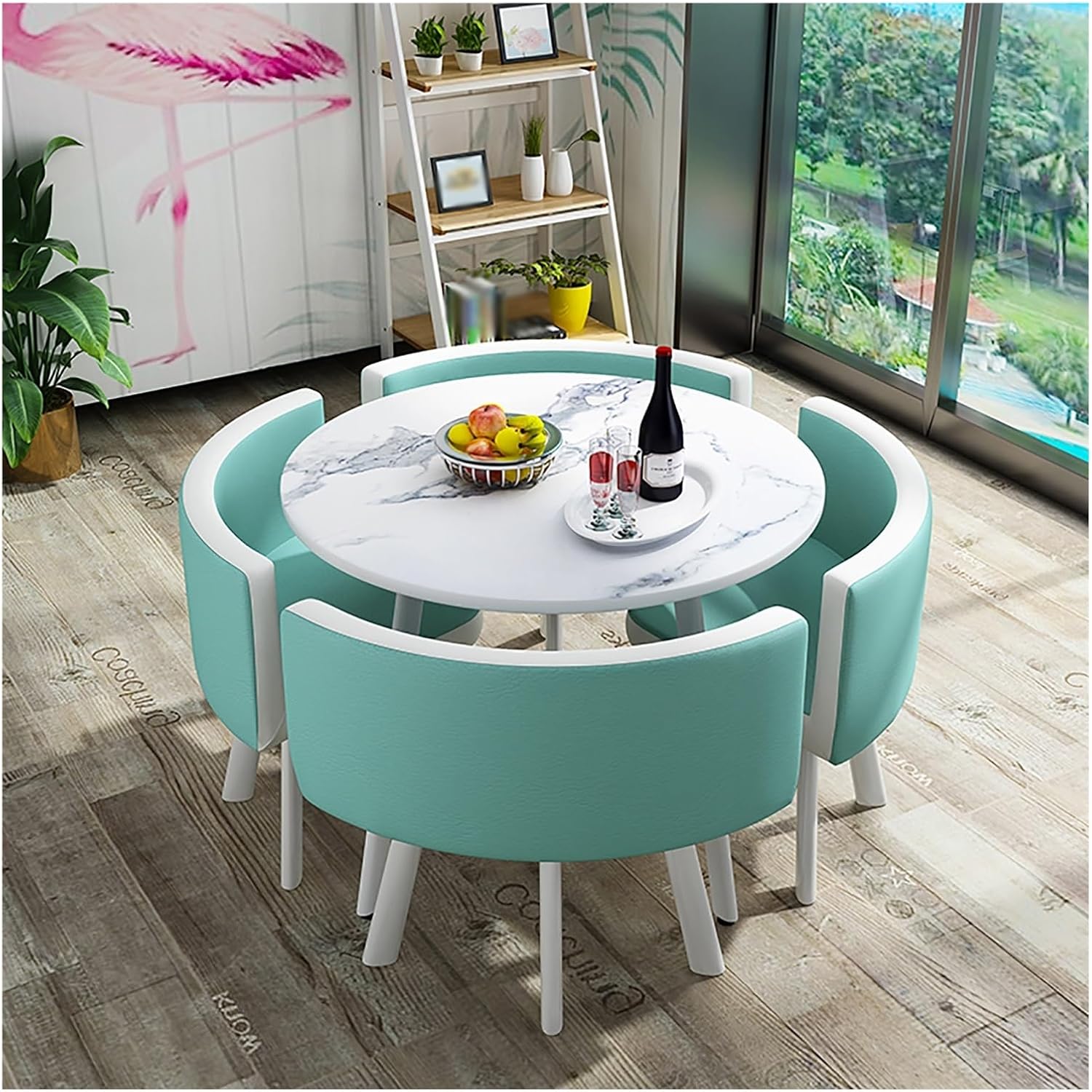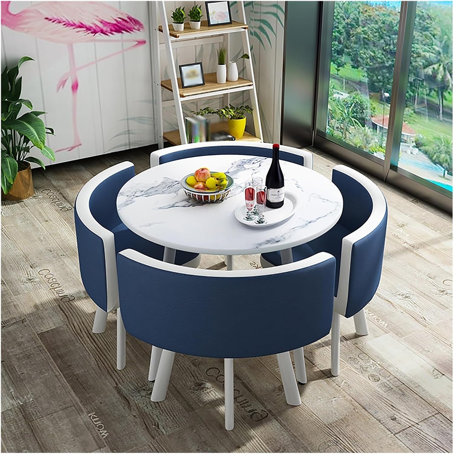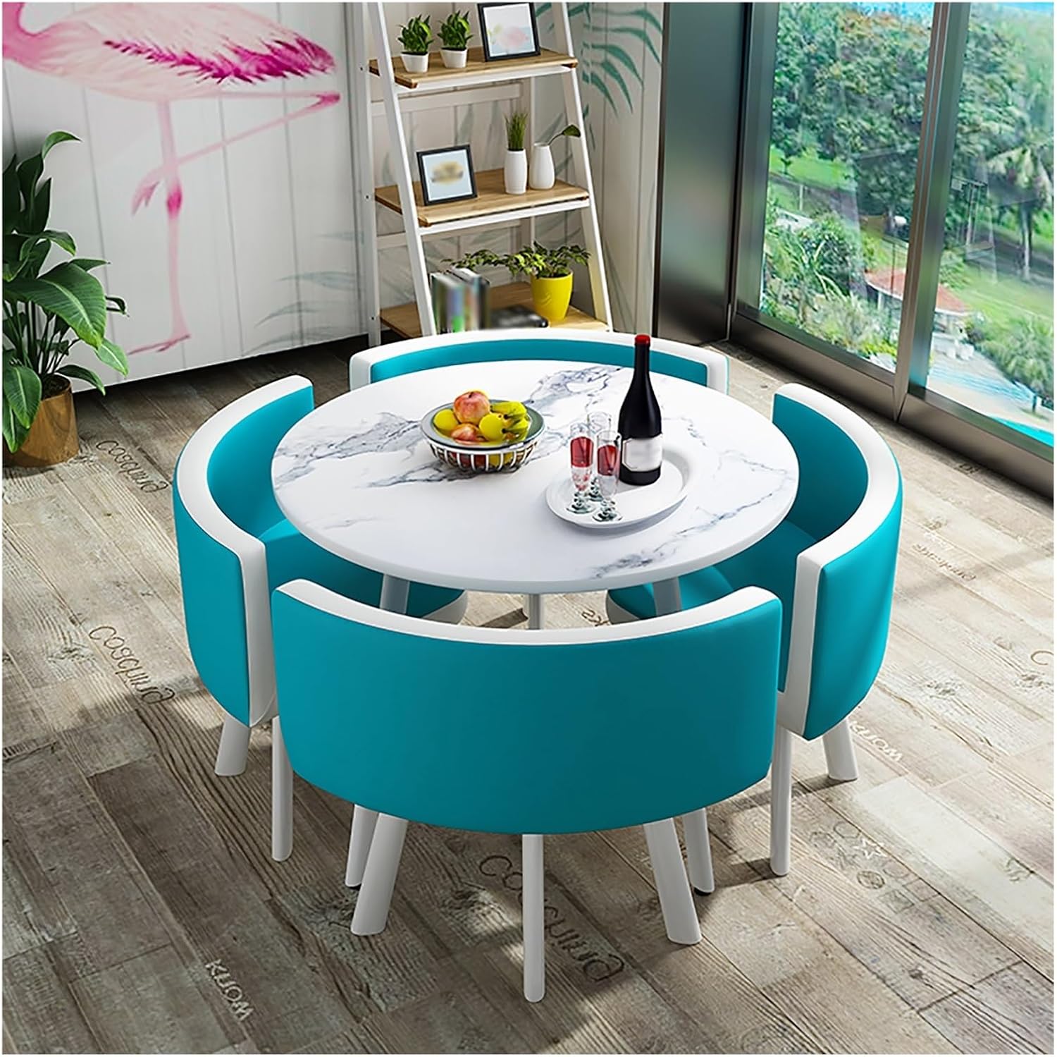 Made of metal and high-density board, this round dining table is sturdy and . The combination of modern design and clean lines allows this small conference table to blend in with any décor. It brings elegance and charm to your space. Negotiate table and chair combination simple casual reception one table four chairs sales office office meeting round table creativity. Product name: conference room table and chairs Style: simple and modern Shape: round Features: Simple and elegant, saving space Function: Free combination, detachable and mobile Desktop material: artificial board Seat material: PU leather Workbench diameter: 90cm Total chair height: 73cm Applicable number of people: 4 people Table and chair combination includes: (4 chairs and 1 table) Applicable scenarios: coffee shops, living rooms, terraces, lounges, reception rooms, offices, outdoors, milk tea shops, bakeries, hotels, negotiation rooms, etc. Packing list: 1 table, 4 chairs (others are decorations and not included) Kind tips: 1. Differences in production batches, lighting, displays, etc. may cause product color differences. 2. Since the apparent size of the product is measured manually, an error of 2-3cm is normal. Please refer to the actual product.