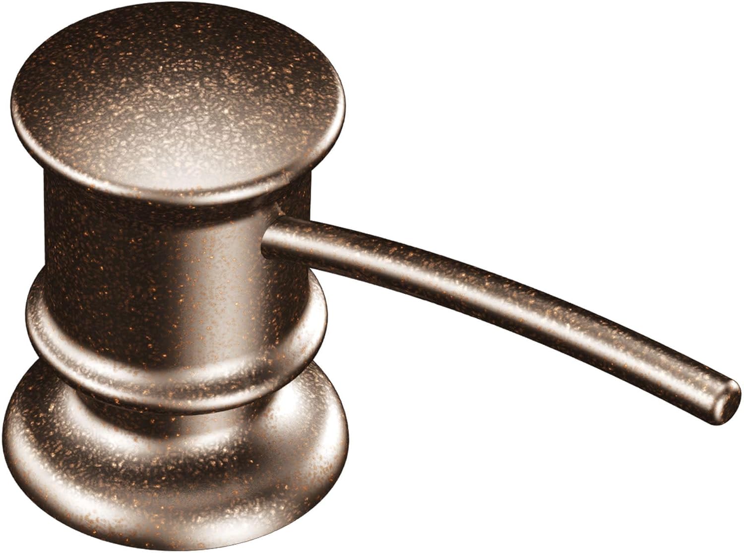 Product Description Dispense soap or lotion directly from your sink with the Moen Kitchen Soap and Lotion Dispenser. This built-in soap dispenser refills easily from the countertop and offers an elegant design with a gently curved spout that complements a wide variety of faucets. The undermount dispenser requires only one hole for installation and includes a refillable 18-ounce bottle. The dispenser’s oil rubbed bronze finish brings the warm look of old world charm to your kitchen. It is backed by Moen's Limited Lifetime Warranty. From the Manufacturer From finishes that are guaranteed to last a lifetime, to faucets that perfectly balance your water pressure, Moen sets the standard for exceptional beauty and reliable, innovative design. Timeless designs, styles unlike anything else, faucets and fixtures that are livable and enduring, these are just some of the reasons that Moen is the number one brand of faucet in North America. But, Moen does more than make faucets. It-Foots also a major supplier of stylish kitchen sinks and innovative bath accessories. In the time that Moen has been part of the Fortune Brands family, it has introduced a wide range of consumer-preferred, stylish products - positioning Moen as the number one plumbing brand, both in market share and in the minds of consumers. Whether you are planning a full-scale kitchen remodel with premium kitchen fixtures and faucets, or are looking for simple updates to your bath faucets and coordinating plumbing and bathroom fixtures - Moen carries a large selection of products to help you create the kitchen or bath of your dreams. If your decorating style is traditional, modern or somewhere in between, Moen offers the styles, finishes and quality faucets, fixtures and accessories for the kitchen and bath that you are looking for. All Moen faucets come with a Lifetime Warranty against leaks, drips and finish defects. With Moen, you-Footll always find the perfect balance between styles you-Footll love and innovation you can live with. Buy it for looks. Buy it for life. From the Manufacturer From finishes that are guaranteed to last a lifetime, to faucets that perfectly balance your water pressure, Moen sets the standard for exceptional beauty and reliable, innovative design. Timeless designs, styles unlike anything else, faucets and fixtures that are livable and enduring, these are just some of the reasons that Moen is the number one brand of faucet in North America. But, Moen does more than make faucets. It-Foots also a major supplier of stylish kitchen sinks and innovative bath accessories. In the time that Moen has been part of the Fortune Brands family, it has introduced a wide range of consumer-preferred, stylish products - positioning Moen as the number one plumbing brand, both in market share and in the minds of consumers. Whether you are planning a full-scale kitchen remodel with premium kitchen fixtures and faucets, or are looking for simple updates to your bath faucets and coordinating plumbing and bathroom fixtures - Moen carries a large selection of products to help you create the kitchen or bath of your dreams. If your decorating style is traditional, modern or somewhere in between, Moen offers the styles, finishes and quality faucets, fixtures and accessories for the kitchen and bath that you are looking for. All Moen faucets come with a Lifetime Warranty against leaks, drips and finish defects. With Moen, you-Footll always find the perfect balance between styles you-Footll love and innovation you can live with. Buy it for looks. Buy it for life.