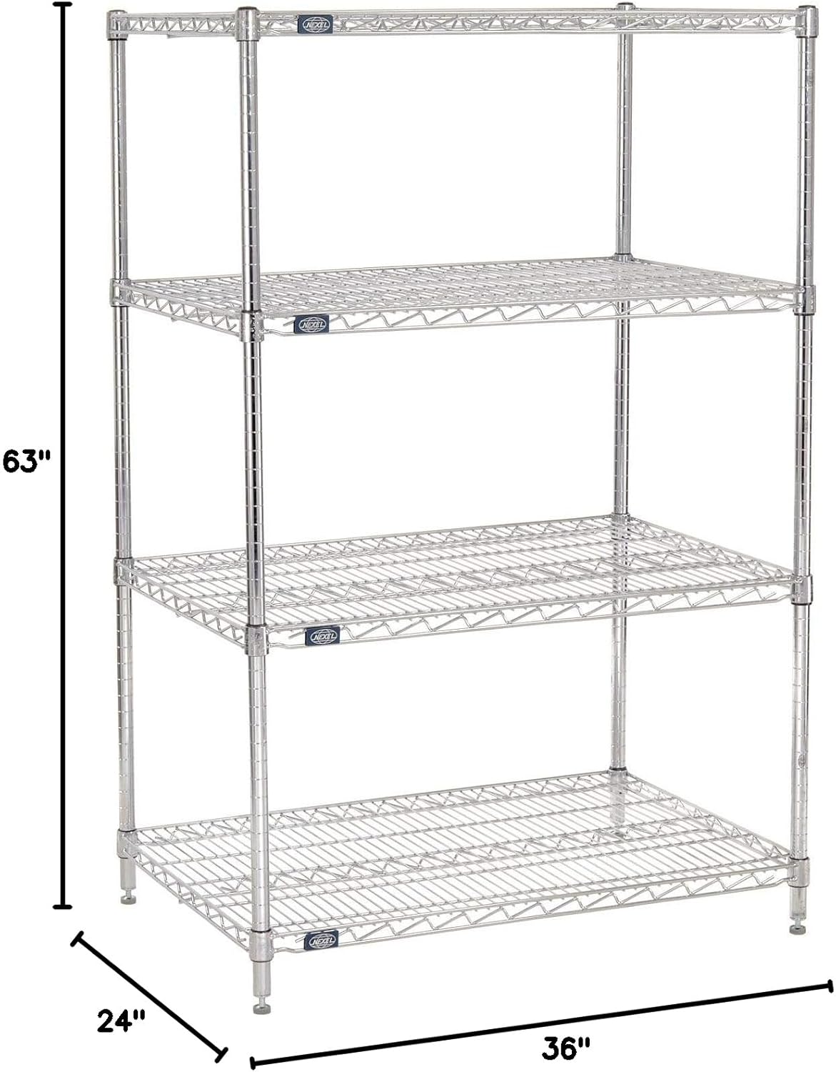 | Item Type Name | Nexel Adjustable Wire Shelving Unit, 4 Tier, Commercial Dry Storage Rack, 24" x 36" x 63", Chrome |