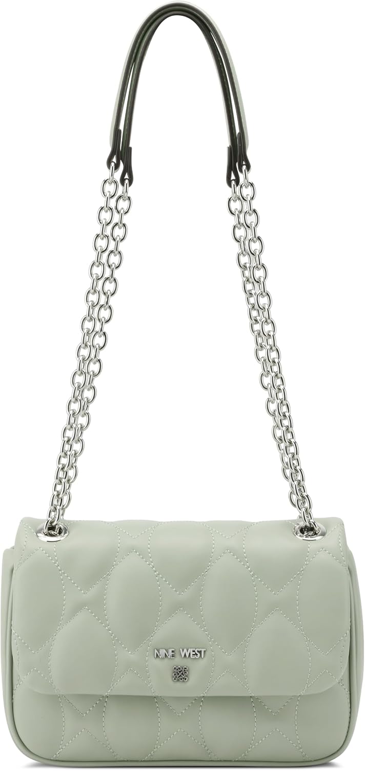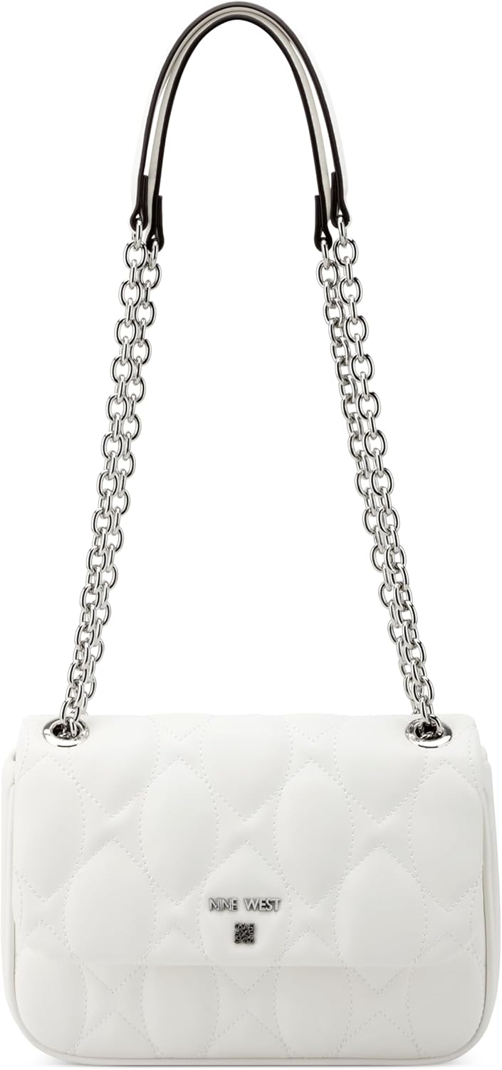 Nine West designer Rue chain flap crossbody, designed in the soft quilted material and stitching details with hardware detail. Internal slip pocket for organization and stunning chain strap for everyday or make it a perfect bag for an occasion. Wear as a shoulder bag or hands free as a crossbody.