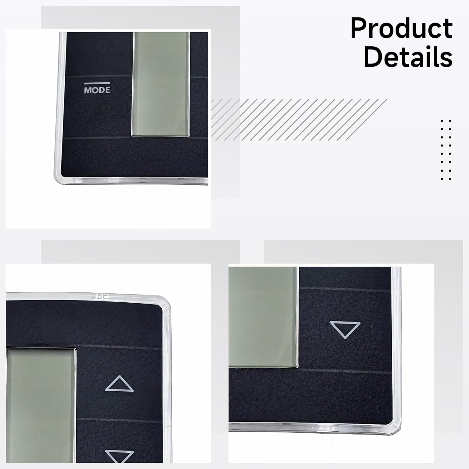 Color:black Material:ABS Product Size: 4.13 in x 3.74 in x 1.18 in Package Includes:rv thermostat x 1 set Note: - Please refer to the measurement. Tiny measuring error is allowable in normal range. - There might be a little color difference due to the monitor, camera or other factors, please refer to the physical item.