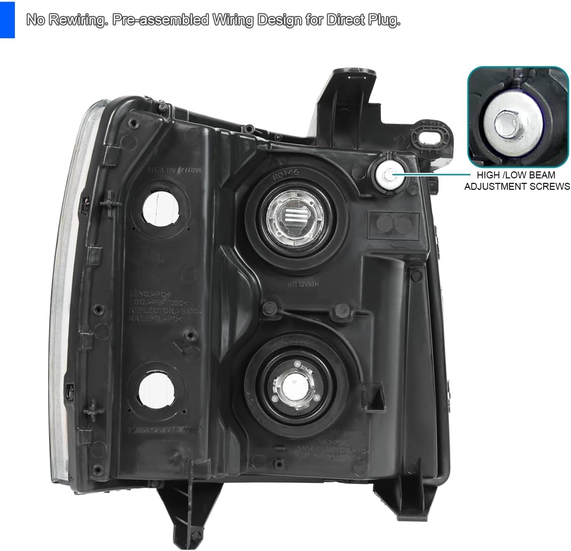 Brand new in original packaging. Exactly the same as shown in the picture! Comes with both headlights. High quality chrome housing smoke lens headlights with amber reflector Bulbs for the lights are not included, please apply stock bulbs for installation. These lights are made by an OE approved and ISO certified manufacturer with the quality meet or exceed all OE standards. Do not come with installation instructions. Professional installation highly recommended. Fitment : 2007-2012 Chevy Silverado all models.