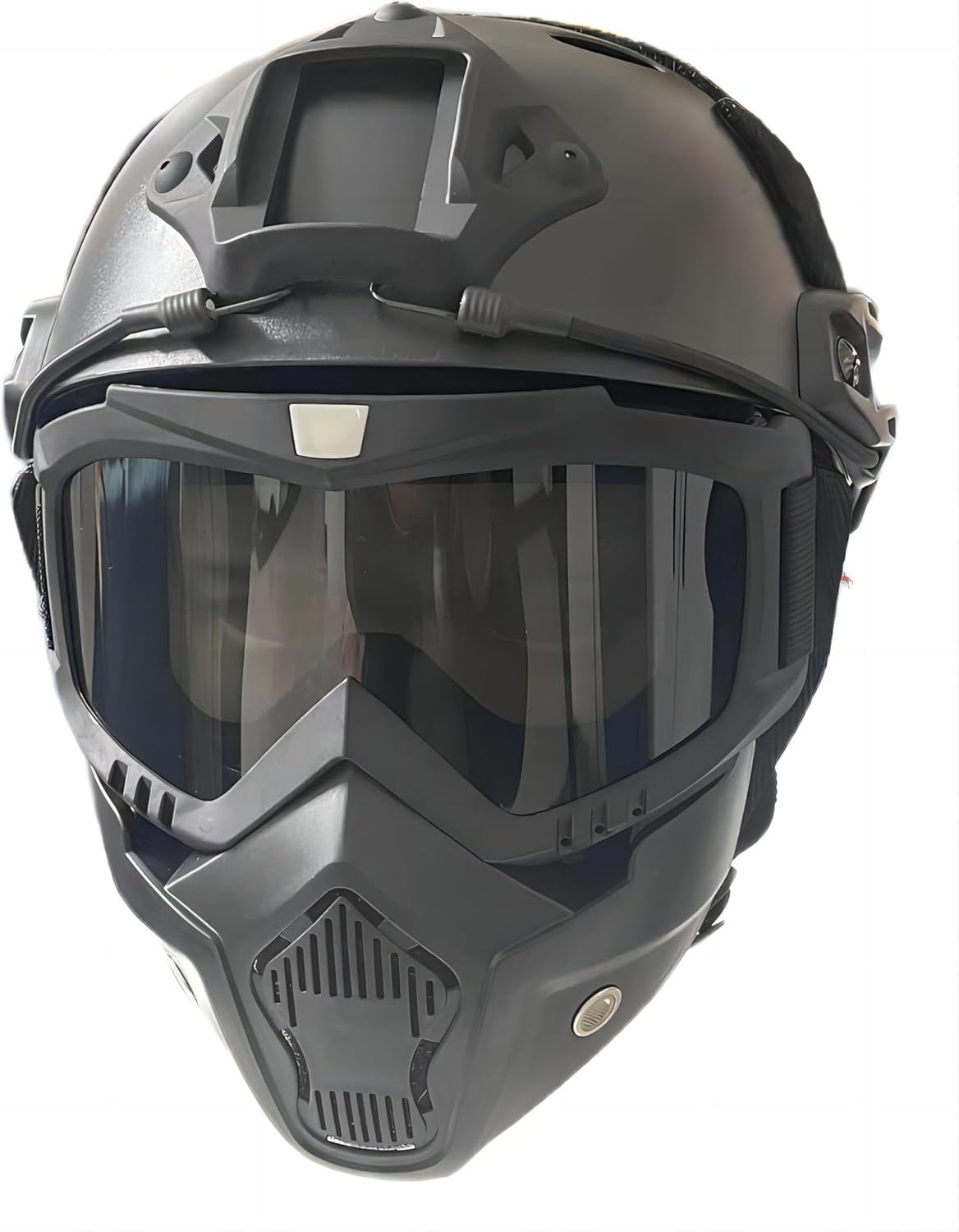 Helmet size adjustable:22.4-23.5in The side rails are suitable for various accessories, and the integrated NVG bracket is compatible with most NVG style brackets. The colored bullet PJ quick helmet, Mask Frame: TPU super toughness(Soft rubber Frame),not easy to break High transparency PC Lens Weight: About 158g Size: Adjustable elastic strap, Package Included Airsoft helmet and mask Products include: Comes with a PJ type Airsoft Helmet, a set of conversion accessories,a Full Face Tactical Mask Goggles, Suitable for outdoor sports such as army, paintball,CS game, hunting, shooting。 If you have any questions, please contact us. We are committed to ensuring the satisfaction of every esteemed Amazon buyer!