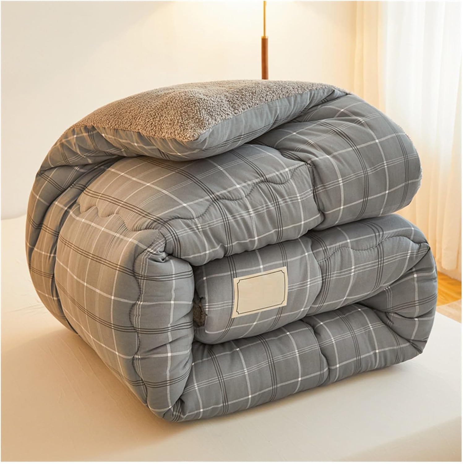 Thick and warm blanket/bedspread made of the softest lamb fiber and polyester. One side is soft washed cotton and the other is warm lamb velvet, like two blankets in one. Moisture wicking and breathable, feel comfortable. Features: Double-sided fabric feels delicate, skin-friendly and warm, moisture-wicking, and breathable. The core is microfiber for maximum warmth during cold weather months. Exquisite padding, so that the filling is evenly distributed and does not move. Bright color, non-fading, elegant and beautiful, suitable for bedroom. Specification: Fabric main component: Faux lamb velvet. Fabric Subcomponent: Polyester Filling: Microfibre. Size and weight (optional): 150x200cm/2.5kg, 150x200cm/3.5kg, 180x220cm/3kg, 180x220cm/4kg, 200x230cm/4kg Package includes: 1 x Quilt Friendly Tip: Please allow 1-2 cm error due to manual measurement. Please understand that colors may have chromatic aberration.